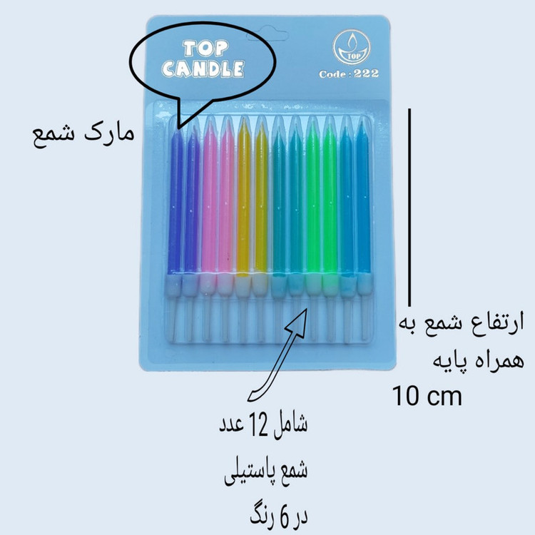 شمع تولد رو کیکی مدل تاپ کندل کد 222 در 6 رنگ پاستیلی بسته 12 عددی