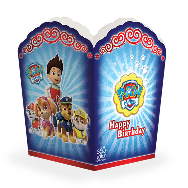ظرف پاپ کرن تم تولد پسرانه سگهای نگهبان (paw patrol) یکی از لوازم ضروری پذیرایی مهمانان است که با چیدن زیبای این جعبه ها کنار هم می توان دیزاین تولد را کامل تر کرد.