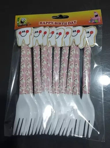 چنگال یکبار مصرف مدل تم تولد دندانی دختر بسته 10 عددی