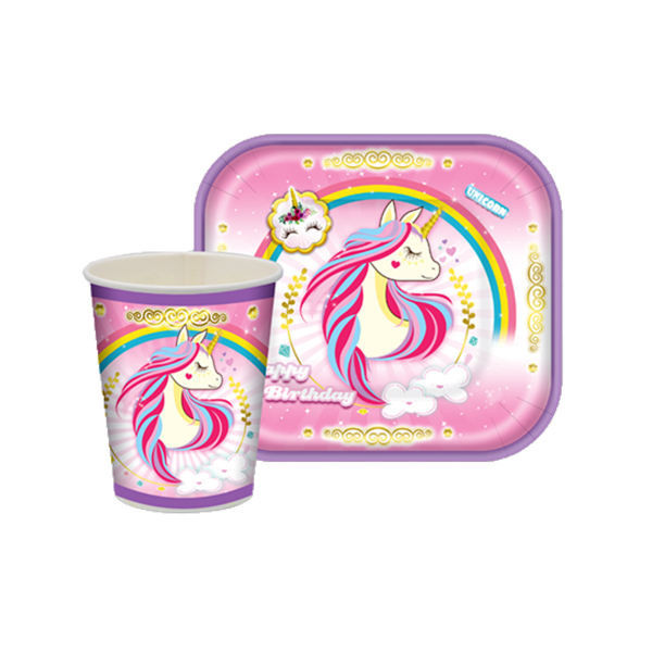 پیش دستی و لیوان یکبار مصرف یونیکورن مجموعه 20 عددی