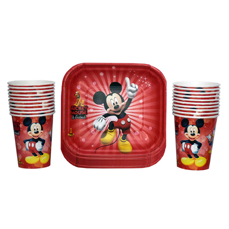 پیش دستی و لیوان یکبار مصرف مدل میکی موس مجموعه 40 عددی