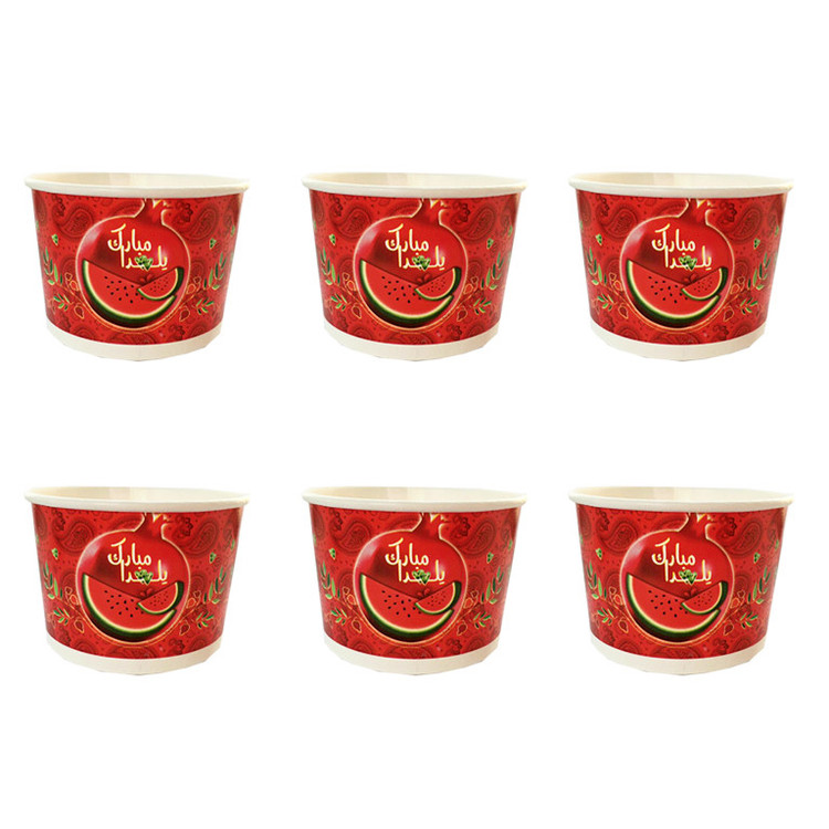ظرف انار خوری یلدا بسته 6 عددی به قطر9 سانتی متر و ارتفاع 6 سانتی متر می باشد. این ظرف ها مقوایی بوده که در رنگ قرمز با طرح یلدا مبارک میباشد که میتوان در آن انار ، آجیل ، تنقلات یا برای تزئین نیز استفاده کرد . این محصول جلوه خاصی به جشن یا مهمانی شما میدهد و استفاده های بی نظیری میتوان از آن کرد .