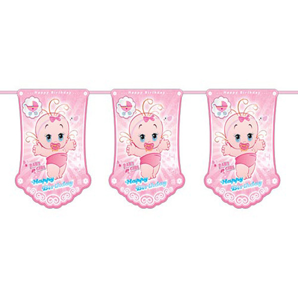 ریسه پرچم تم بی بی دختر (Baby Girl) با برند سورساتان یکی از لوازم محبوب تولد است. ریسه پرچم بی بی دختر (Baby Girl) در طول 3 متر با تعداد 10 عدد برگه هفتی و هشتی از جنس مقوای گلاسه به ابعاد 15x23 سانتی متر و در فاصله یکسان به ربان وصل شده که تصویر زیبای نوزاد دختر (Baby Girl) بر روی این محصول چاپ شده است. طراحی ریسه پرچم نوزاد دختر (Baby Girl) بسیار شکیل و زیباست و جهت تزیین مراسم تولد در نظر گرفته شده است. ریسه پرچم تم تولد با نام های ریسه هفت و هشت، ریسه مستطیلی یا نام های دیگر نیز معروف است. ریسه پرچم تم بی بی دختر (Baby Girl) در دسته لوازم تزیینی جشن قرار دارد. این محصول توسط مجموعه سورساتان طراحی و تولید می شود.