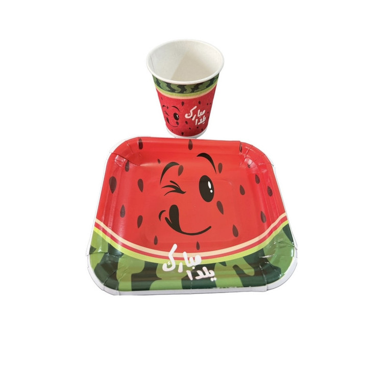 پیش دستی و لیوان یکبار مصرف طرح یلدا مجموعه 20 عددی
