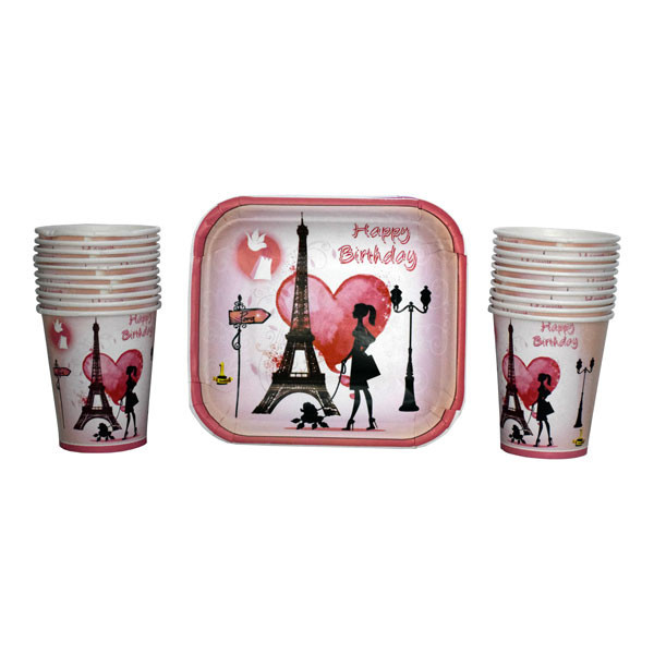 پیش دستی و لیوان یکبار مصرف پاریس مجموعه 20 عددی